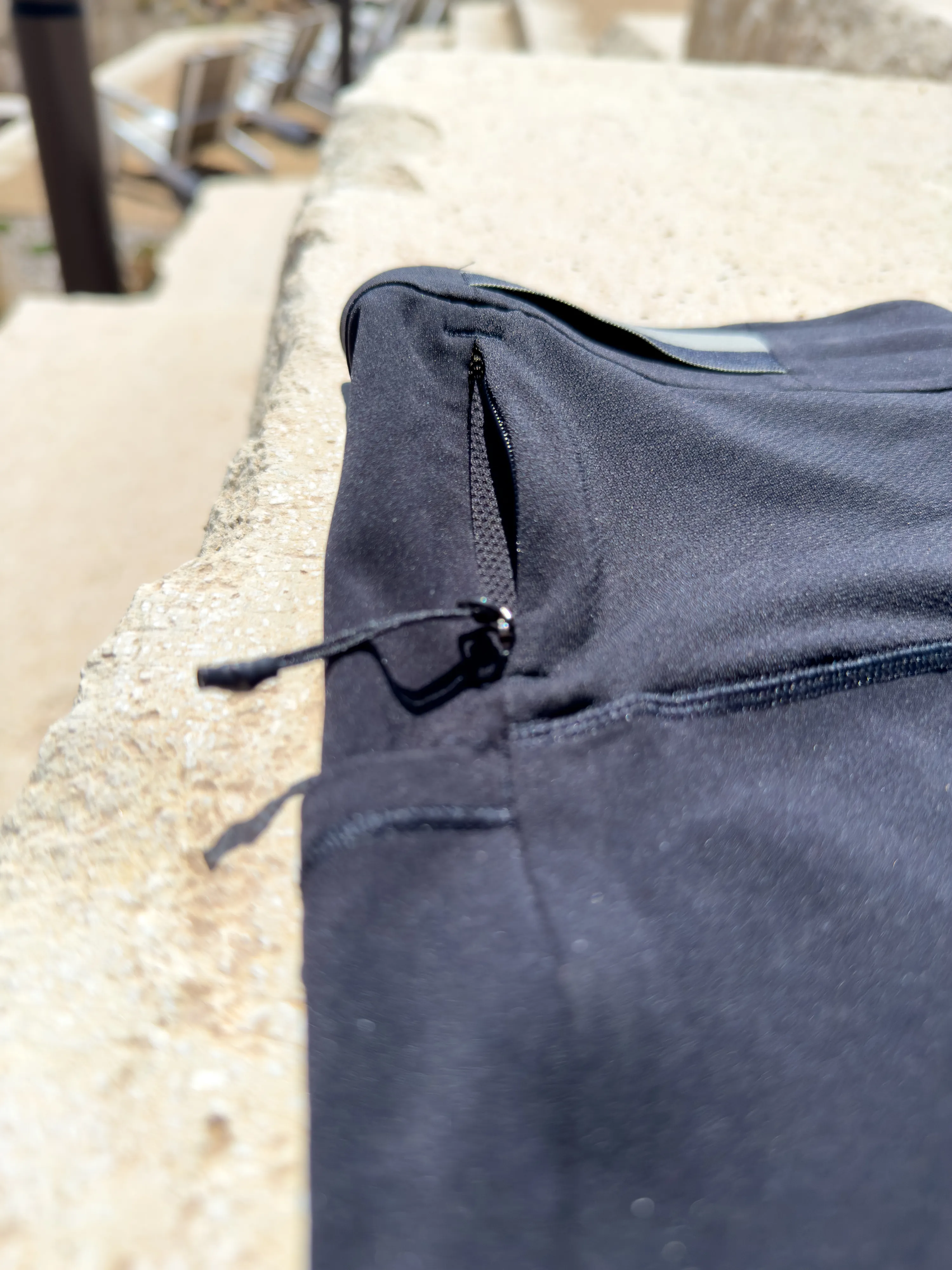 The pockets on the Fast and Free Half Tights are up there for me. There is one sizable pocket on each leg, with a smaller pocket within each larger pocket. I assume the inner pockets are for small items (like keys or gels), with the outer pockets for things like phones. The larger pockets are likely able to carry most phones, but most phones will stick out a bit, with larger ones sticking out more. My iPhone 16 Pro takes up basically the entire large pocket, but the pocket doesn’t “close” over the top of it. Even so, I feel confident carrying things in them and nothing bounces or moves around excessively. Slightly taller and I’d give them an even higher score.